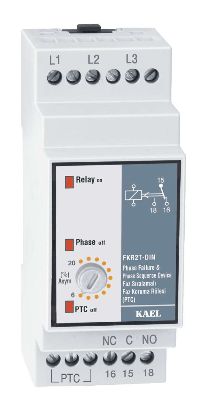 Kael | FKR2T- DIN | Phase Failure and Phase Sequence Device Phase failure & phase sequence relay with PTC protection –
