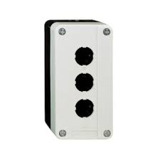 This 3 cut-outs white empty push button box is ideal for general purposes use as it enables machine builder to add any required control units for custom factory-assembled stations. It protects operators from unexpected and hazardous contact thanks to its double insulation. It is vibration, high pressure washer and dust resistant thanks to its IP65 protection, making it ideal for operation in harsh environments.