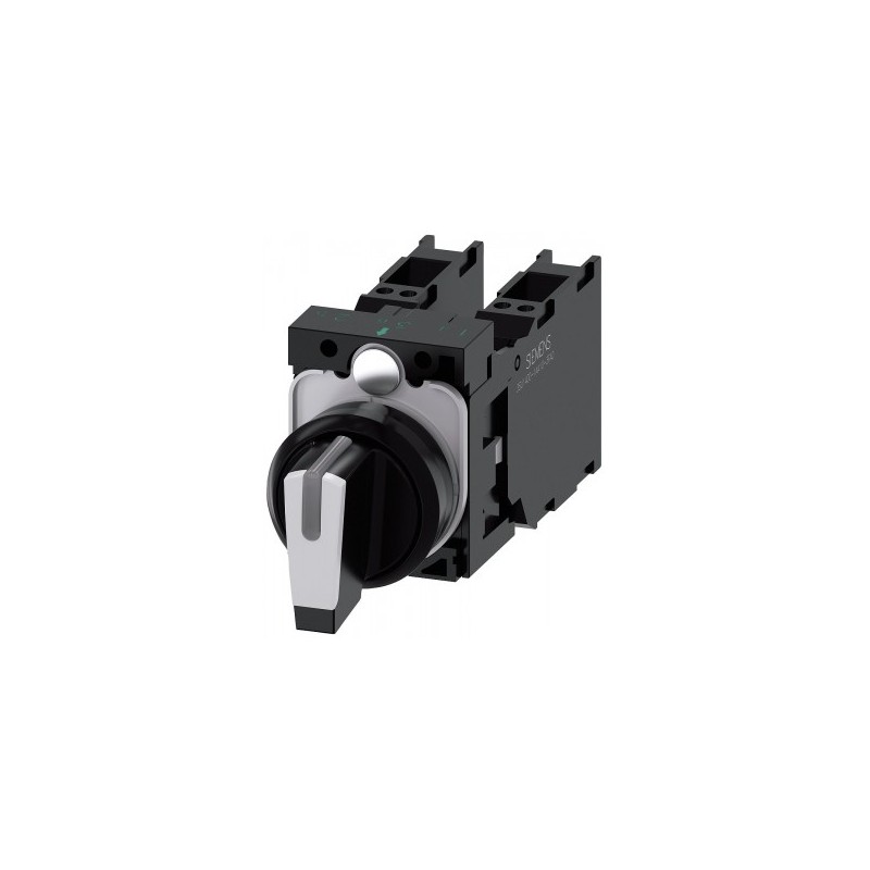 Selector switch, illuminable, 22 mm, round, plastic, white, selector switch, short, 3 switch positions I-O-II, latching, 10:30h/12h/13:30h, with holder, 2x1NO+1NC, Spring-type terminal