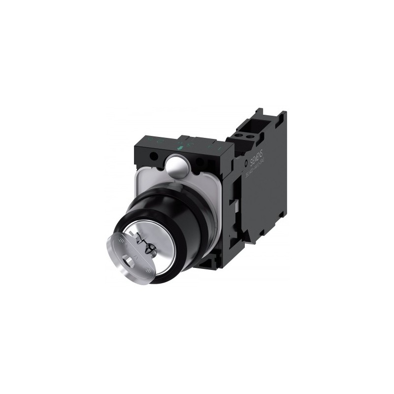 RONIS key-operated switch, 22 mm, round, plastic, lock number SB30, with 2 keys, 2 switch positions O-I, latching, 10:30h/13:30h, key removal O+I, with holder, 1 NO+1 NC, spring-type terminal, possible special locks: SB31, 421, 455