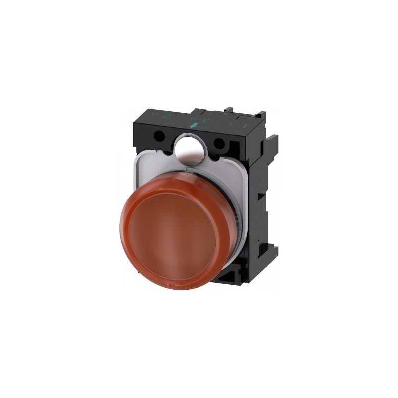 Indicator lights, 22 mm, round, plastic, amber, lens, smooth, with holder, LED module with integrated LED 110 V AC, screw terminal