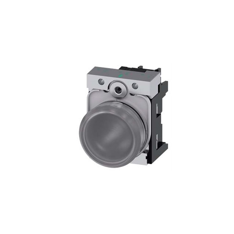 Indicator lights, 22 mm, round, metal, shiny, clear, lens, smooth, with holder, LED module with integrated LED 110 V AC, screw terminal