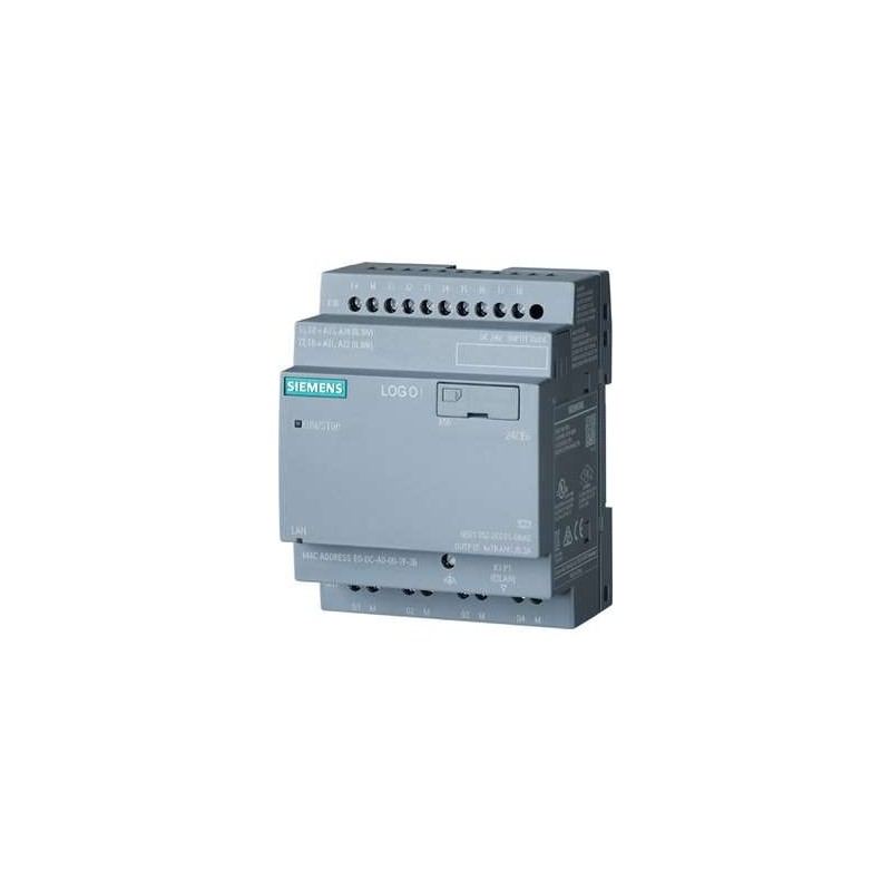 LOGO! 24CEO, logic module, without display, PS/I/O: 24 V/24 V/24 V trans., 8 DI (4AI)/4DO, memory 400 blocks, modular expandable, Ethernet integr. web server, data log, standard microSD card for LOGO! SOFT Comfort V8 or higher older projects executable