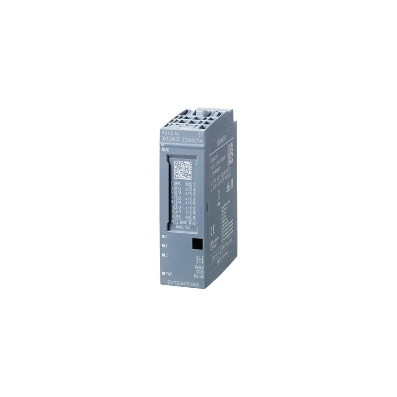 SIMATIC ET 200SP, relay module, RQ COni 3x120VDC..230VAC/5A ST, 3 CO contacts non-isolated contacts, packing unit: 1 unit, suitable for BU type U0, color code CC20, substitute value output, module diagnostics for supply voltage
