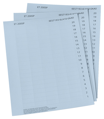 SIMATIC ET 200SP, 1000 labeling strips, light gray, 10 sheets DIN A4, perforated, paper, 180G/M2