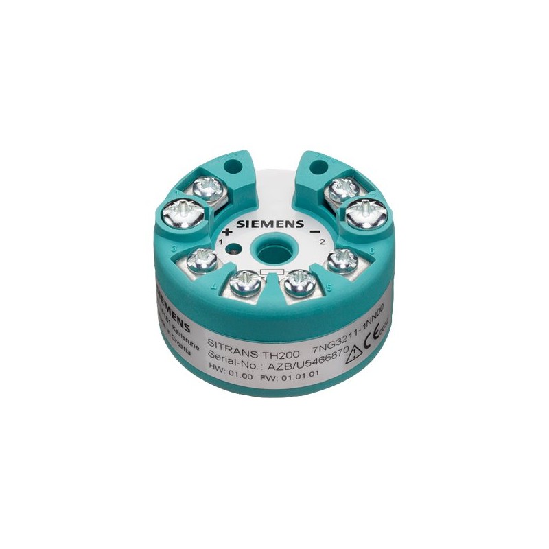 Temperature transmitter SITRANS TH200 for installation in connection head, type B (DIN 43729), two-wire system 4…20 mA, programmable, with electrical isolation Without explosion protection . .