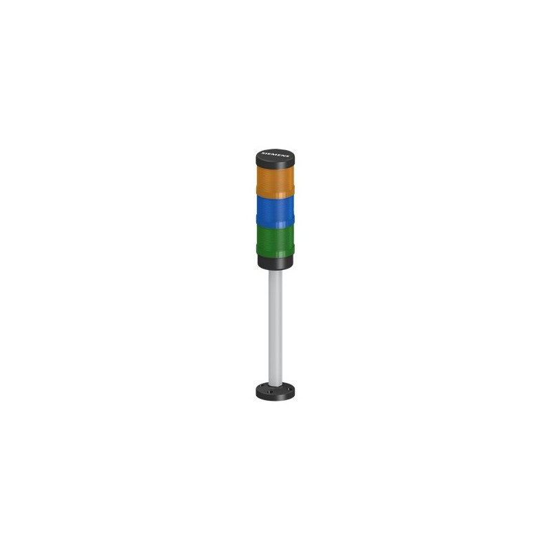 Complete unit signaling column, top: continuous light, yellow, center: continuous light, blue, bottom: continuous light, green, integrated LED 24 V AC/DC, connection element for pipe mounting, pipe, 250 mm, base, plastic